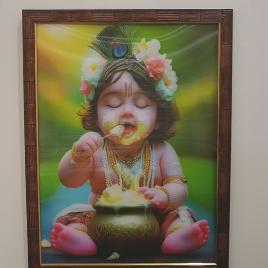 Baby Krishna Eating Makkhan 12x16 inches | 3D Lenticular Painting