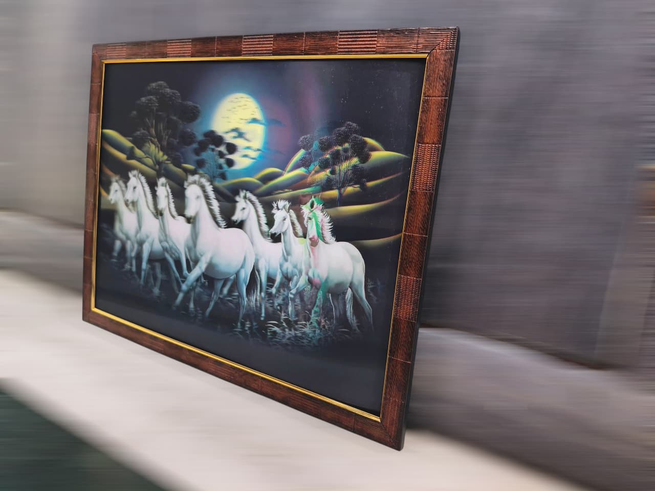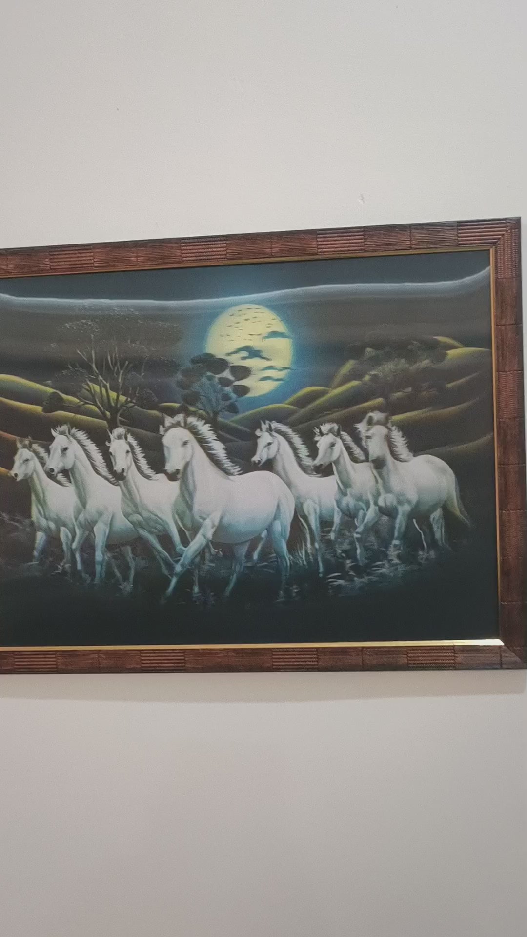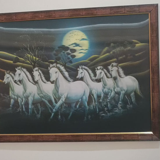 Bring good luck and prosperity to your home with this stunning Seven Horses Framed Art. This artwork features seven powerful horses running together, painted in bright colors with a golden sunrise background. It’s a symbol of success and energy, perfect for living rooms, offices, or as a thoughtful gift!